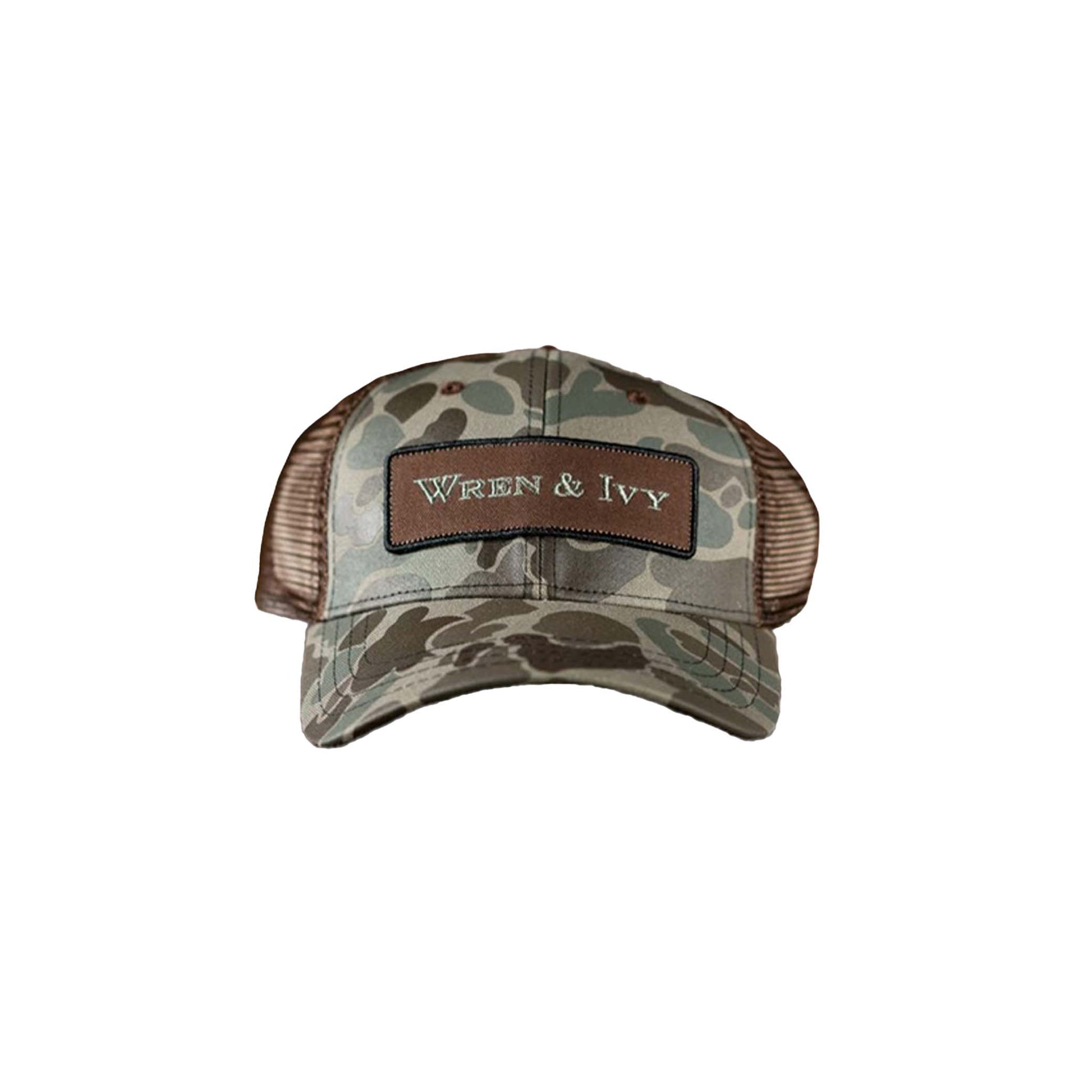 A perfect blend of classic camo style and modern comfort. This hat features a distinctive camo pattern on the front panels and brim, paired with a breathable mesh back for optimal ventilation. The Wren & Ivy logo is prominently displayed on a stitched patch, adding a touch of heritage and quality.
