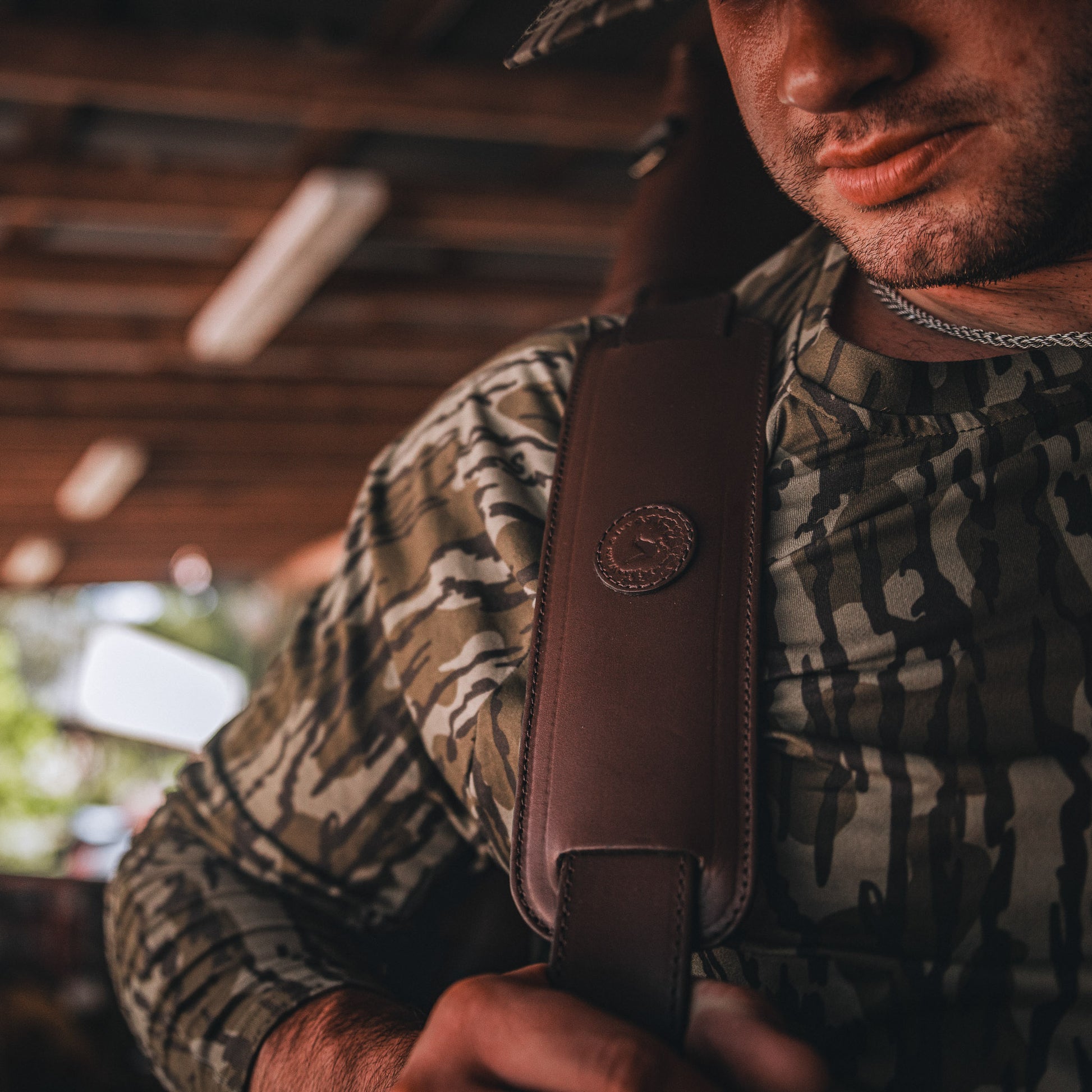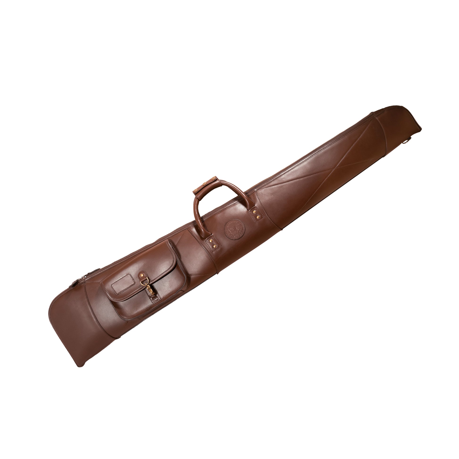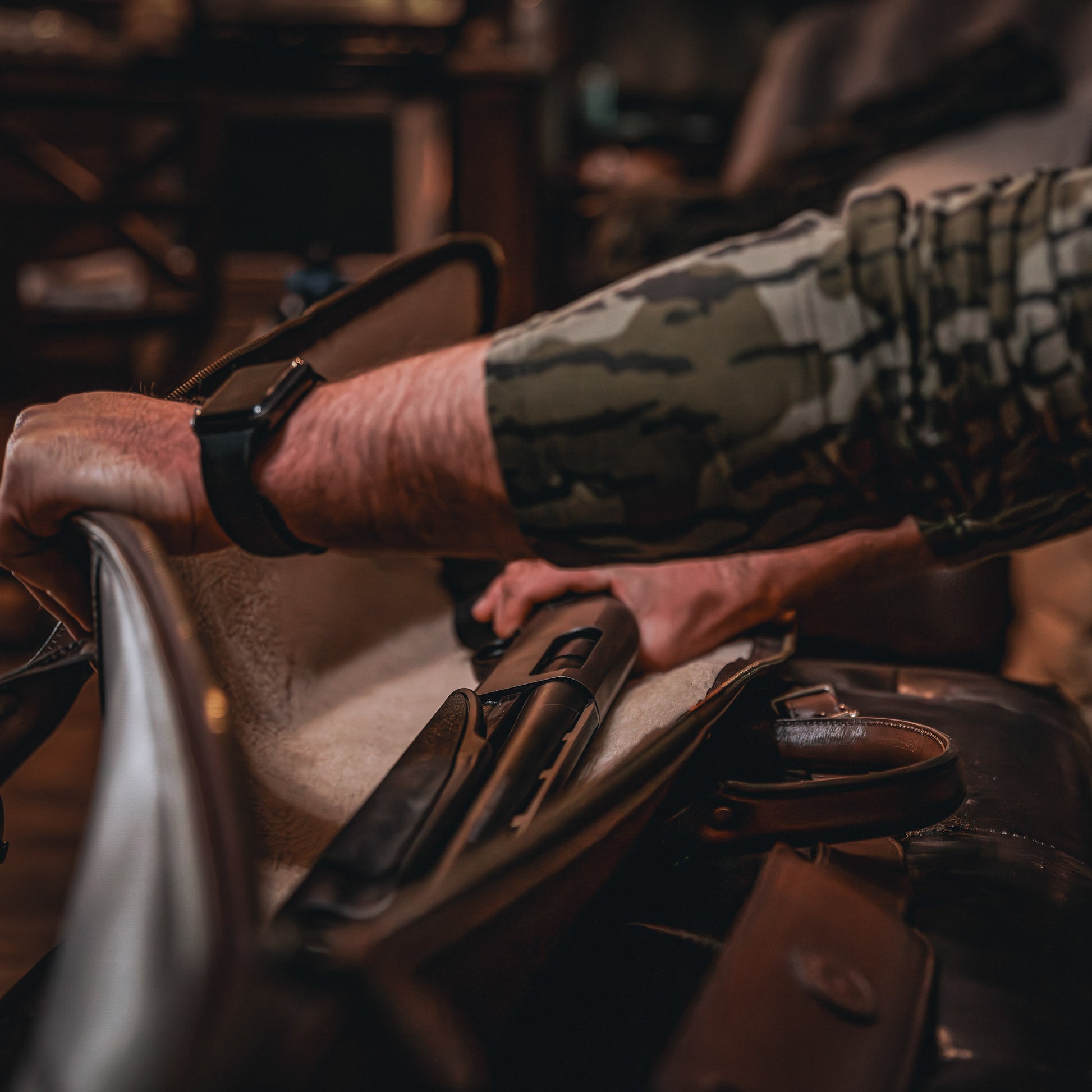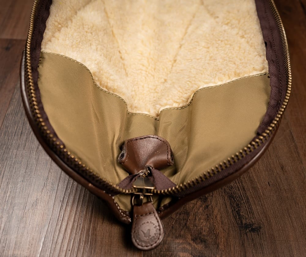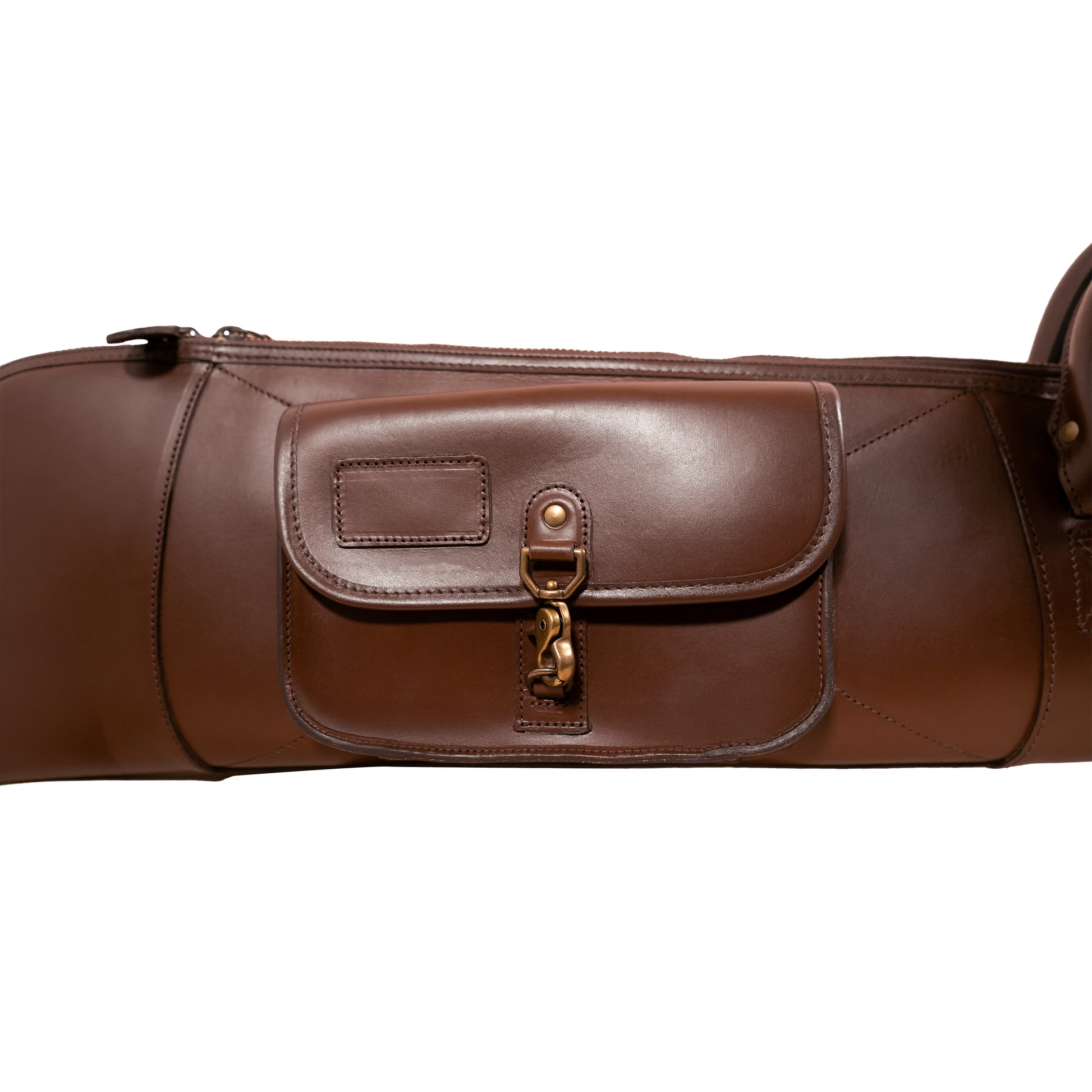 The Wren & Ivy Fowling Piece Case is the ultimate solution for keeping your firearm, choke tubes, and tools safe, secure, and accessible. This case is constructed from bridle leather and waxed Filter Twill canvas, combining durability with a classic aesthetic. Spacious enough to fit your firearm with a sling attached, it features lockable solid brass zippers, and a closed-cell foam liner that not only protects your firearm but also allows it to float in case of an accidental drop overboard. The front pocket is designed for functionality, with six loops for choke tubes or ammunition, an ID pocket, and a tube wrench pocket. Inside, the fleece liner protects the finish of your firearm, with a classic shearling look that is easy to clean, quick to dry, and non-wicking. The barrel end of the liner is reinforced with Military Spec Pack Cloth, preventing the bead of your shotgun from snagging during removal. After muddy field days, the case’s full-length opening makes cleaning effortless, and it can be hung to dry by the solid brass D-ring. Carrying is made easy with double-riveted, reinforced handles bound by a three-snap handle wrap and an included detachable shoulder strap.