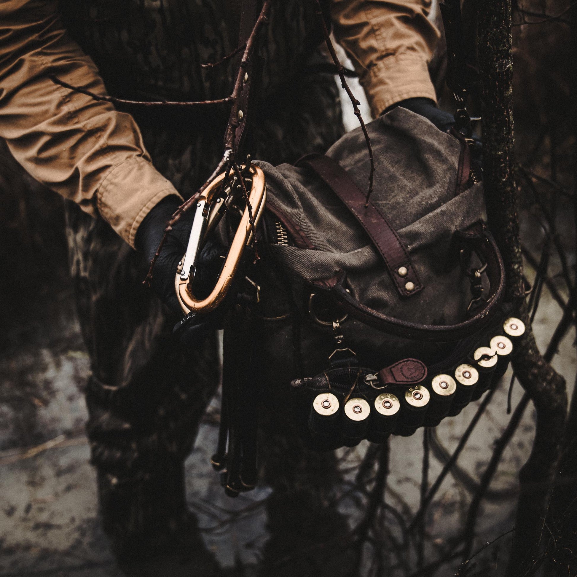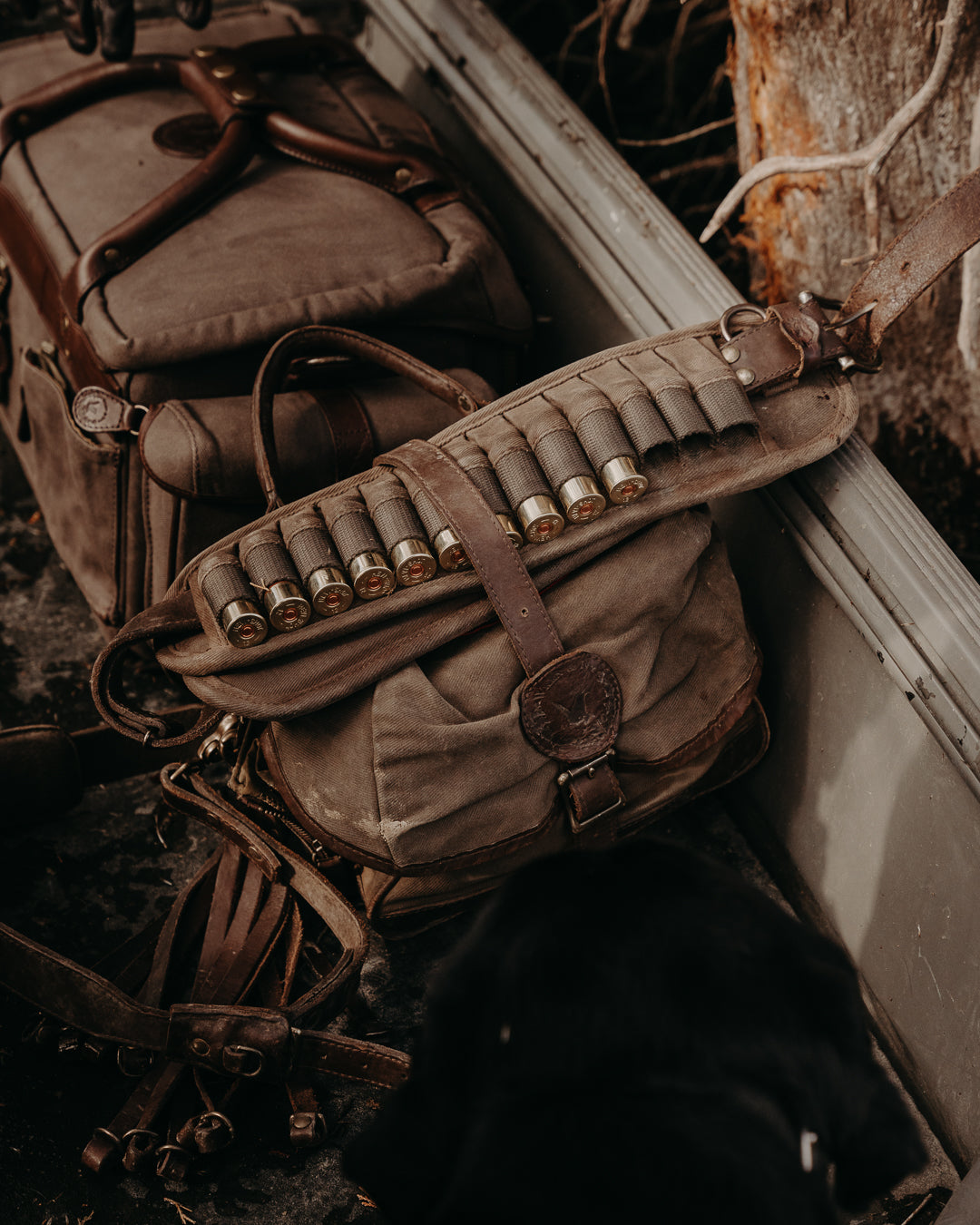 Snapping onto the back is the Heirloom Shell Pack, giving you fast access to 9 shells and a little extra room for the things that can’t get lost in the bottom of a bag. Rounding it out, two bridle leather Game Stringers give you what you need to carry birds or run dogs without overthinking it.
