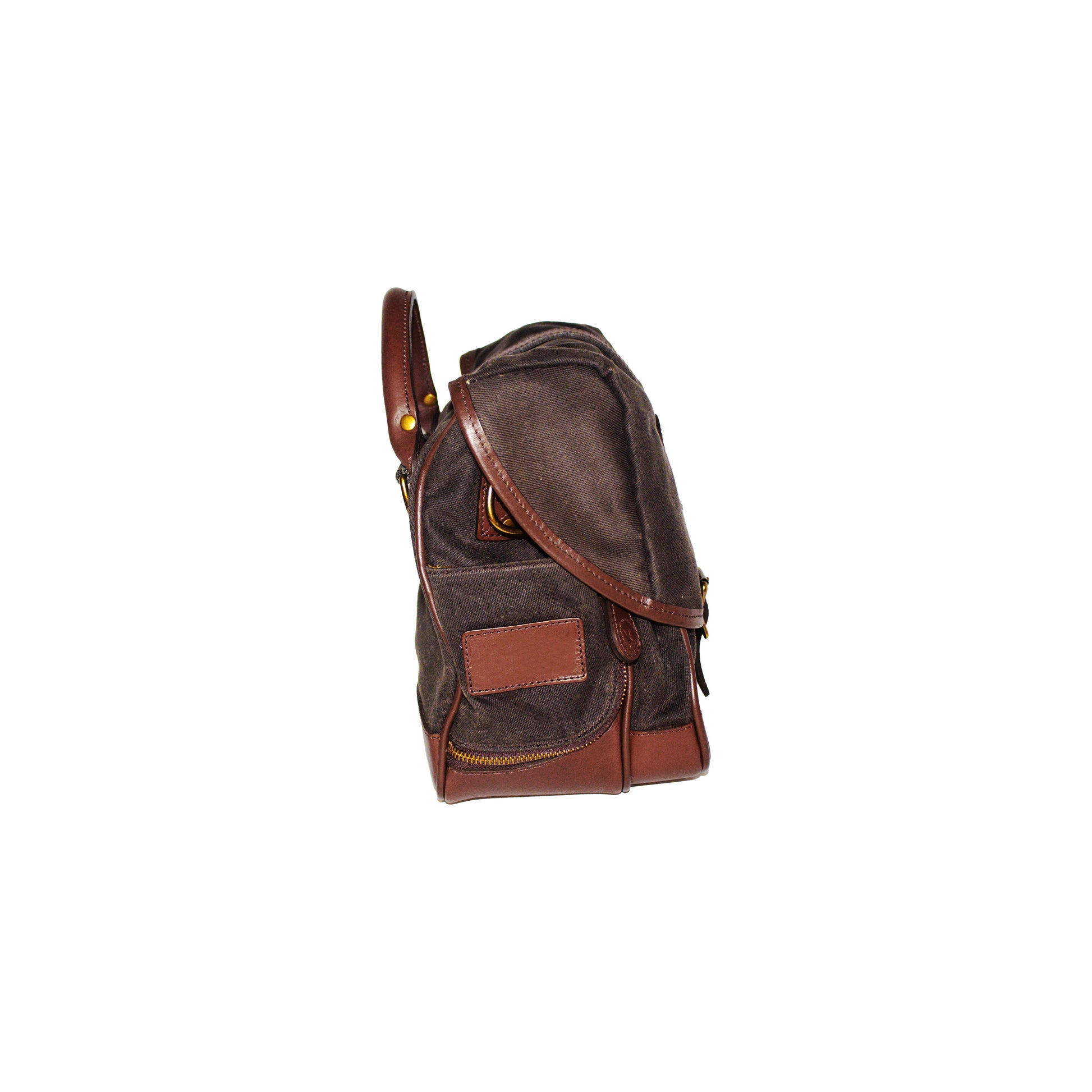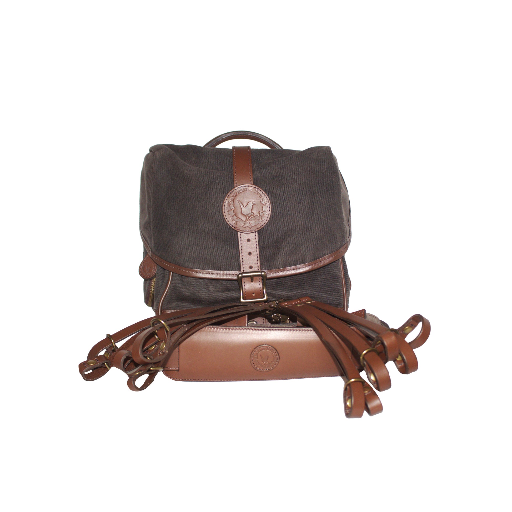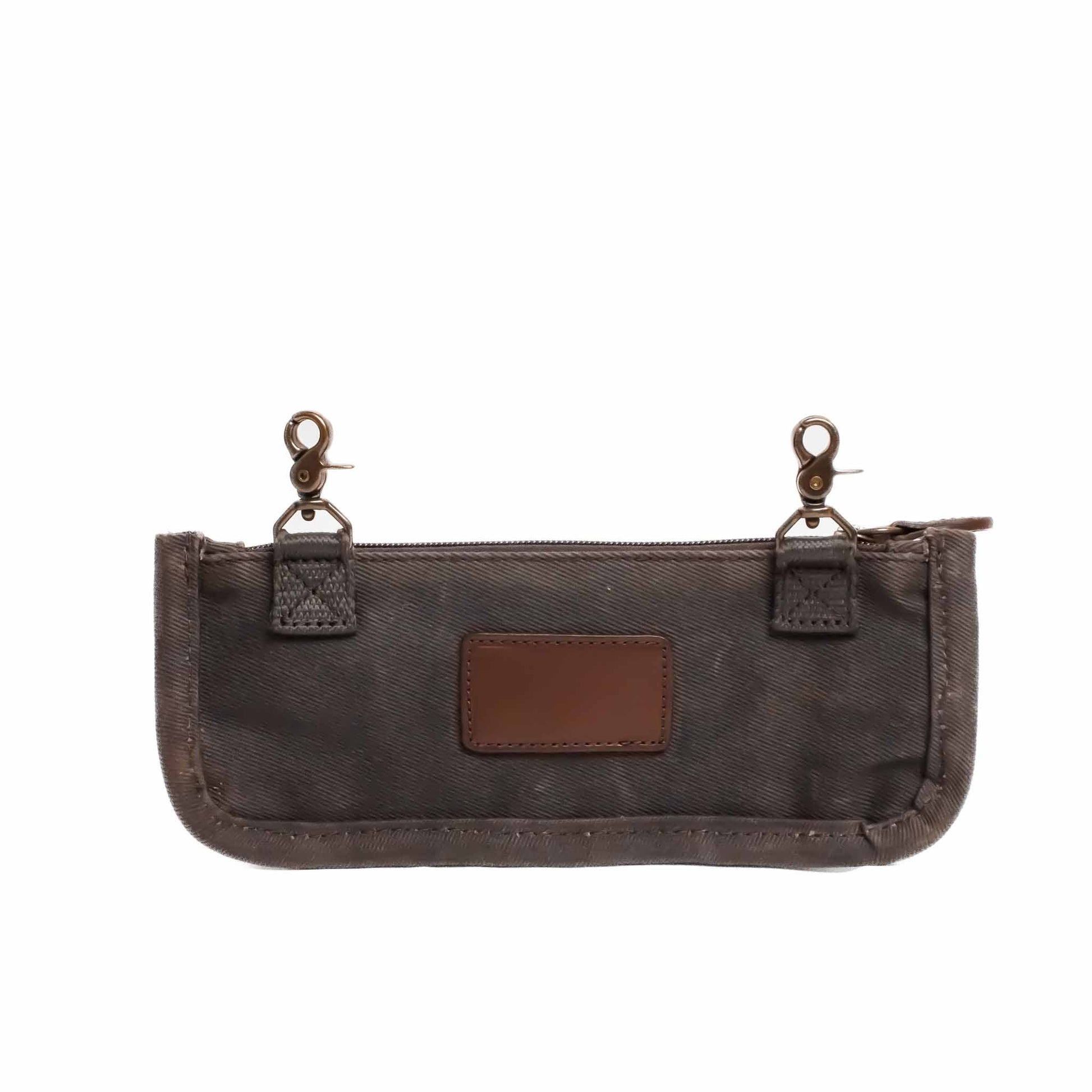 - Heirloom Ditty Bag built from bridle leather and waxed Filter Twill canvas with a rain flap, lockable zipper, ID pocket, key clip, and expandable cup holders.