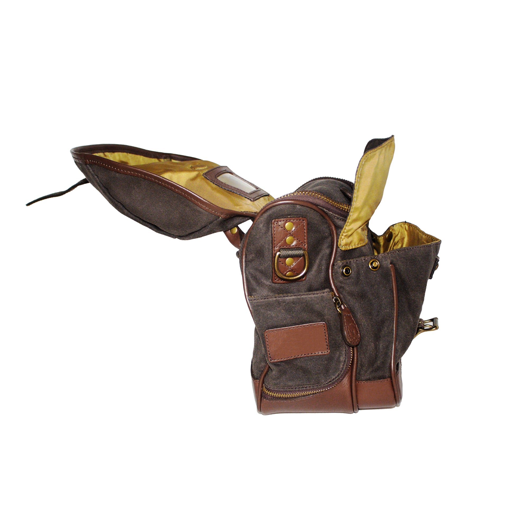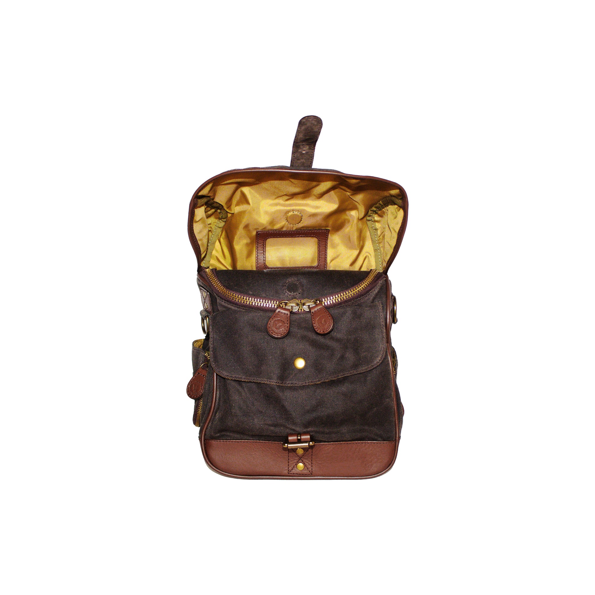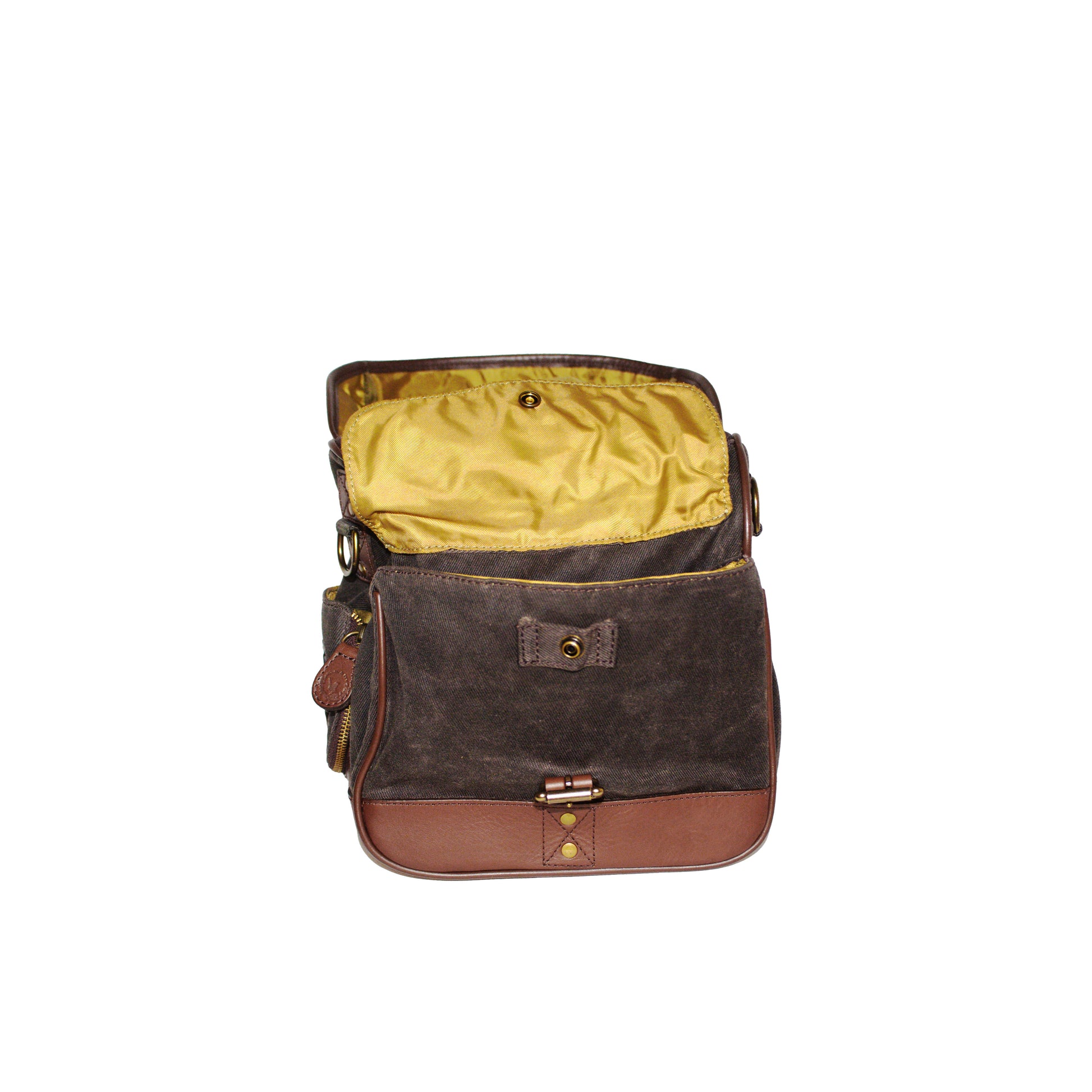 - Heirloom Ditty Bag built from bridle leather and waxed Filter Twill canvas with a rain flap, lockable zipper, ID pocket, key clip, and expandable cup holders.