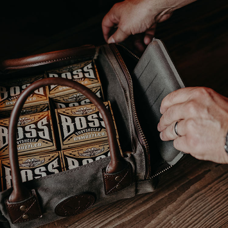 Knowing that a day in the field is precious, we designed the Six-Box Range Tote to help you make the most of every moment. Whether you're out in the field or at the shooting range, the open center compartment is perfectly sized to hold six boxes of shotgun shells in your preferred gauge. Two spacious, zippered pockets provide ample storage for choke tubes, hearing protection, shooting glasses, and other essential gear. The Six-Box Range Tote is sure to become a crucial part of your outdoor equipment it certainly has for us. As with all Wren & Ivy Sporting and Travel Gear, this tote is crafted for durability and convenience.