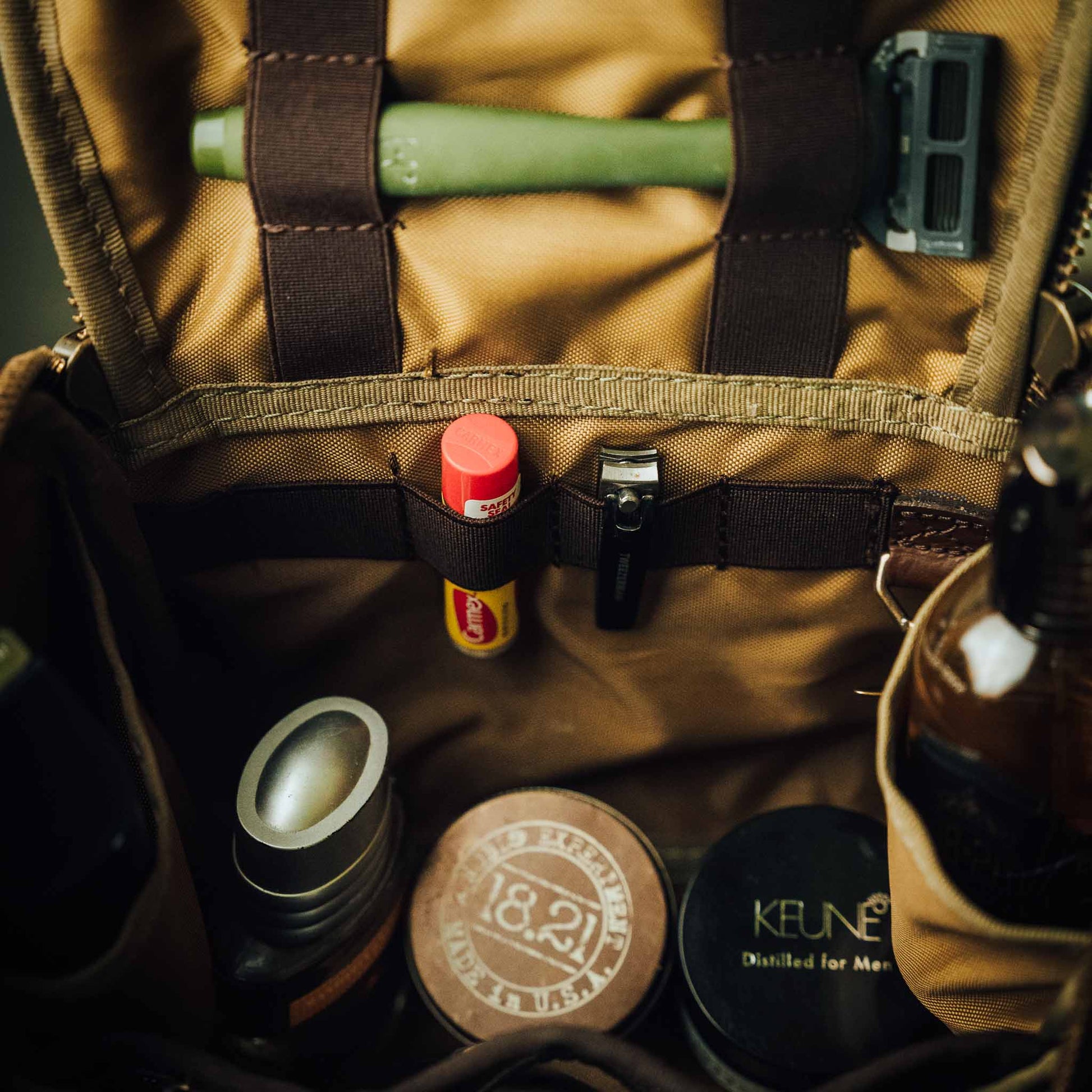 - Thoughtful Organization: Features organizers for all your necessities, including a water-resistant pocket and elastic loops for smaller items.