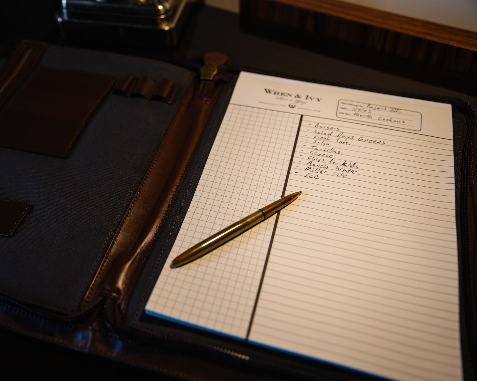 When you purchase the Essentials Presentation Portfolio, the Jobsite Notepad is included. However, we’ve made it available as a standalone purchase for two reasons: to provide an easy refill option for your Essentials Presentation Portfolio, and to allow you to rep the Wren & Ivy brand in your own portfolio. Wherever your work takes you, the Jobsite Notepad is ready to go along for the ride.