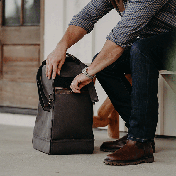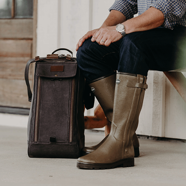 We all know that the right outdoor footwear is essential. Since we've never found the perfect bag for this critical piece of gear, we made our own. We designed something rugged enough for roadside wader changes and slopeside step-ins, yet refined enough for your finest riding boots or even those custom cowboy boots you finally had commissioned. Built from our signature waxed twill canvas and vegetable tanned bridle leather, the Paladin Boot/Wader bag is compact enough to save valuable space on the go, yet large enough to house your breathable waders. The front flap folds out into a sizable changing mat when you're ready to swap your boots for your “street shoes”.  Lined with a military-spec pack cloth, you can hose down the inside when it's muddy and know the top vent will keep your bag from trapping moisture. The included adjustable shoulder strap makes for easy carrying to the lodge, lift, or stable  All of the hardware on the Paladin Boot/Wader Bag is solid brass, and it comes with our limited lifetime guarantee.